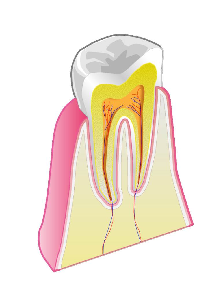 歯の表面にはエナメル質という半透明の物質がございまして、その内部にはめちゃくちゃ黄色い象牙質というものがございます。(先日、当サロンのスタッフが娘ちゃんの頭突きで歯が剥離しましたが、真っ白な歯の中の象牙質は確かに黄色?茶色でした)こちらが透けて見えて黄色く見えるというのも歯が黄色く見える原因にございまして、犬歯が結構これにあたります。